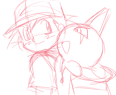 休みのうちに清書できるとイイナ。ちょっとサトシがガキっぽいかも…けど、ヨーギラスを連れてる頃はこんな感じだったかも。