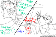 今日の日記絵は落書チャで描いた落書。アモ様がヘンな顔になってしまいました。もっと美人な面長くんに描かなくては。