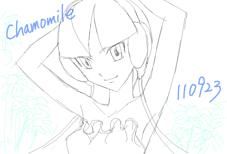 今日はなんだか異常に肩が凝ってる…お絵描きがままならない、とか言いつつカミツレさんを落書。後ろにカモミールの花を描いたつもりが…ただの雑草みたい;
