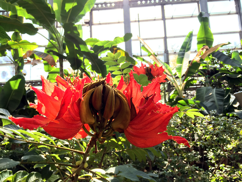 外は強風で寒かったけれど、よく晴れていたので温室の中は暑かった…
