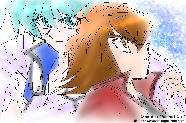 今日の日記絵は絵チャで描いたふたごたち。WEBではヨハ十が増殖中らしいですが、ウチではふたりとも攻体質のためか、あんまりCPらしくはならず兄弟っぽい。