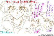 今日の日記絵は半年ほど前の4/24に落書チャ室で描いた十代三態。多分、三人目つーことで綾波レイ化しております、十代クン。