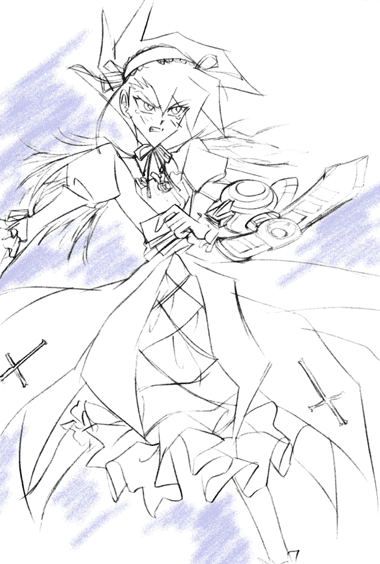 お嫁サンダーのコスプレ・デュエル…水銀燈とかいいんじゃね?と思いつつ、こっちもひどい描きなぐり状態なのでお色直し…否、色無しです。