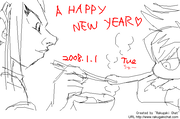 描き直しましたが、いつにも増して雑絵です。お雑煮で一家団欒♪ジムパパ、画面に入ってるのは髪と袖だけですが一家団欒。