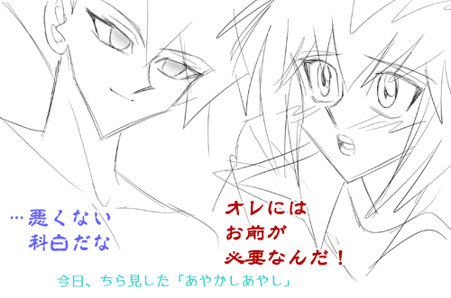 ウン。自分的ツボな科白です。是非とも白丈目に対して十代クンから言って欲しいです。多分、当時もそう思って落書したんでしょう。一年ちょっと前だけど、変わって無いのな、志向(つか嗜好)。