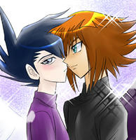 イメージは比翼の鳥です。互いの片翼でハート型を作ったつもりだったんですが…微妙なハート型。文字は『長恨歌』の一節(コレで合ってたよなぁ?)で。