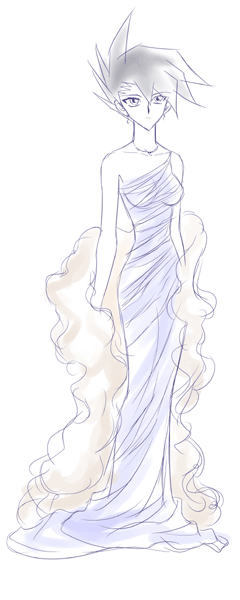 去年のアカデミー賞授賞式で広末が纏っていた衣装はこんなだったかなと。色はブルー系じゃなくて、シャンパンゴールドに近かったと思いますが、準子に着せるならオベリスクの青か北校インナーの紫というイメージが固定されているので(^^ゞ