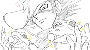 今日の絵日記は爬虫類大好きクロコダイルさんとアリゲーター・ベィビー。アリゲーターなのにニプルとスタイが可愛すぎvv