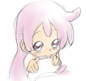 日記絵↓は、どれみの孫娘ふぁみ。この赤ちゃんみたいな口元を何に喩えれば…!!