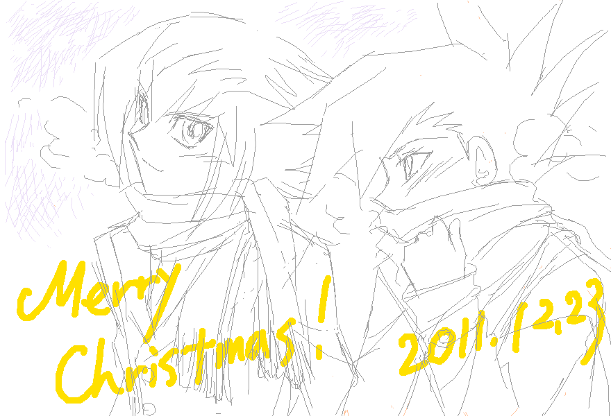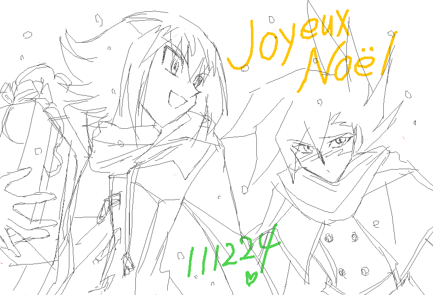 お絵描きも久し振りで、リハビリ兼ねたクリスマス十万。画面の外では勿論恋人繋ぎのお手手です^m^