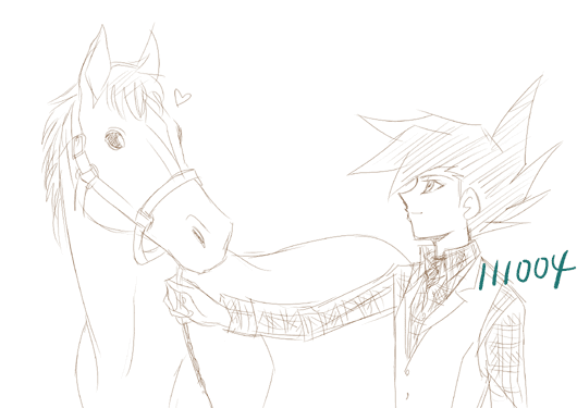 お馬の写真を見てたら、可愛いショットがあったので万丈目さんを当てはめて描いてみました。む…むずかしい…