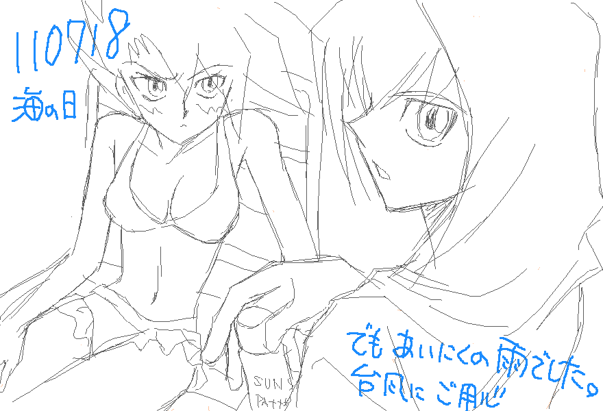 日記絵は昨日の続き。日焼け止めは+++位でないと効果がないってホント(・・?