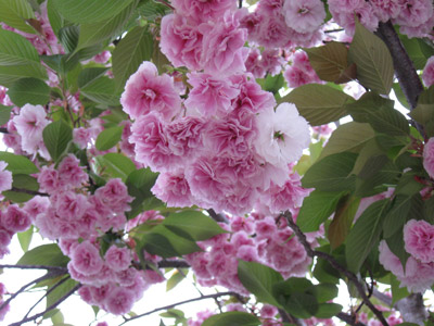 写真は百万遍とは関係なくて、今月三日に行った東寺で見かけた遅咲きの八重桜。