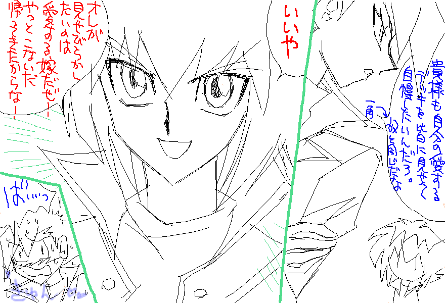 素敵なプレゼントを有難うございましたO様vvv自分の駄絵に手間取り、サイトに上げるのが遅くなってしまって…うぅ申し訳ありません。